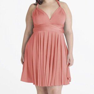Henkaa Sakura Convertible Midi Dress One Size Peach Pink Coral Multi-way EUC