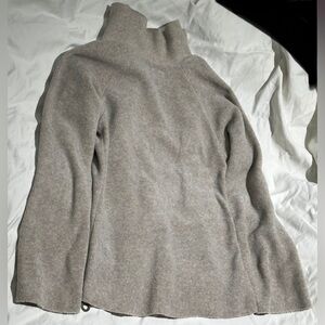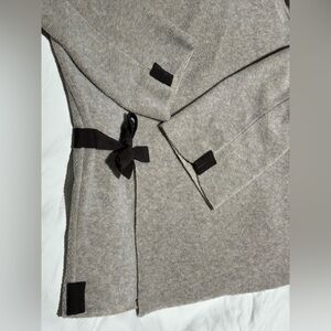Cozy fleece jacket by Henriette Steffensen Copenhagen - size medium. Perfect for layering with its beautiful colour. Closes with a tie on the side or would look great worn open front style. There is some visible wear on the bottom and sleeve seams as well as washing wear on areas throughout as this is a previously owned & gently used item. Lightweight & soft feel. Made of 30% viscose & 70% polyester. Please view last two photos for size visual.