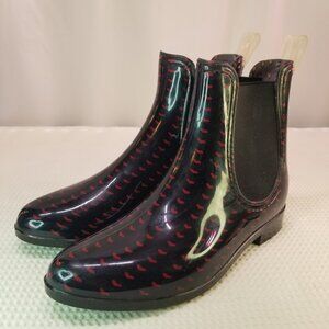 Henry Ferrera Women's Ankle Rain Boots Size 7 Red Hearts Navy