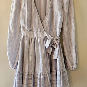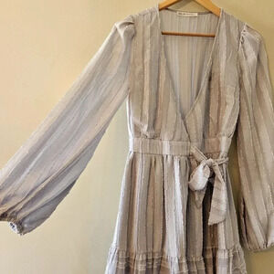 Here Come The Sun Wrap Long Sleeve Mini Dress Grey Size XS.