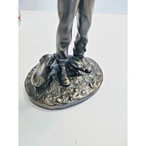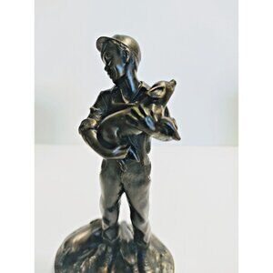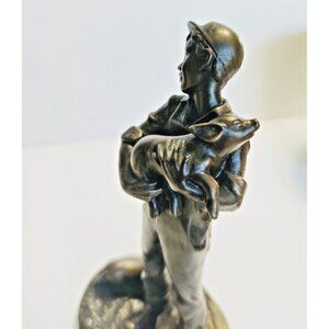 Heredities Vintage Resin Bronz Boy holding piglet Figurine P.Parsons