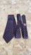 Classy authentic Hermes 100% silk tie featuring an elegant geometric pattern, dark and lighter blue and red sprinkled throughout.