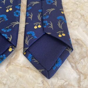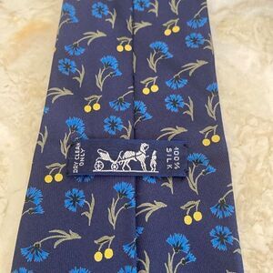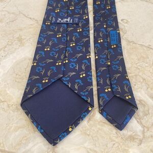 Hermes 100% Silk Tie Floral Blue Dianthus