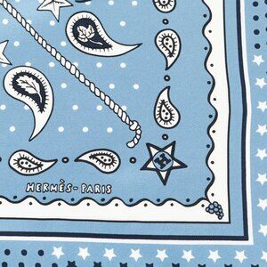 Hermes Bleu Jean, Marine, & Blanc Le Rodeo Des Fruits Silk Bandana 55