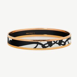 This bangle bracelet from Hermes is printed with the Brides de Gala pattern in white and black, and features gold-tone detailing.