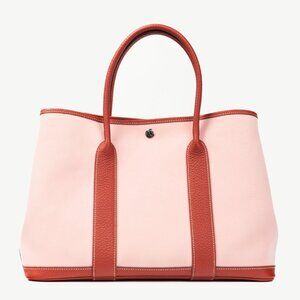 Hermes Garden Party 36 Sakura Toile Militaire, Rouge Duchesse Vache Country Tote