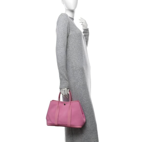Hermes Garden Party TPM Toile Officier Vache Leather Tote Bag Pink Handbag