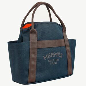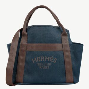 Hermes Grooming Bleu Navy & Feu Canvas Bag