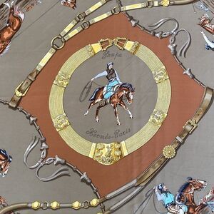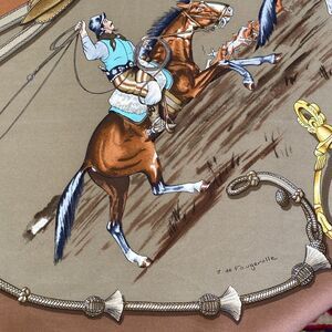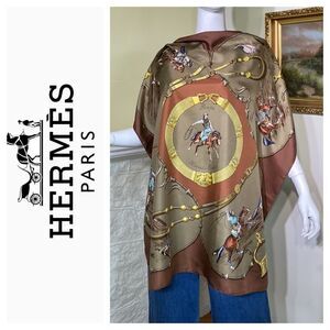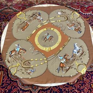 Stunning authentic Hermes Paris Jean De Fougerolle "Pampa" Silk Scarf, 90cm square.
