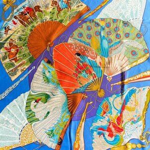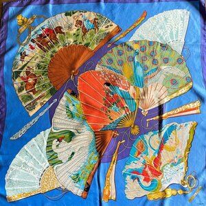 Hermes Silk Twill Brise de Charme by J. Abodie Hand rolled Fan Motif Scarf.