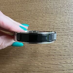 Hermes Silver Toned Black Ceramic Clic Clac Bracelet. 'H' closure.