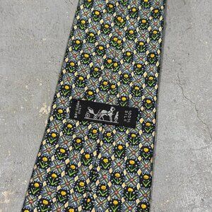 Hermes Paris Sun Flower Pattern Mens Satin Neck Tie