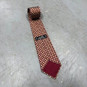 Hermes Tie Woven Box Pattern Paris 100% Silk Made in France Red 4"