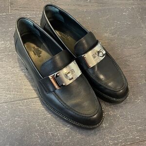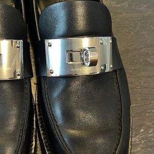 Hermes Women’s Hot Loafer Black Leather with kelly metal Hardware Size 38