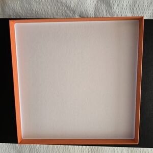 Hermès orange box with logo. Perfect for storage or gifting. This empty scarf box is in pristine condition.