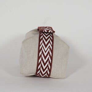 This Hermès pouch is made from durable 100% cotton canvas with a herringbone lining and features a distinctive embroidered “H” motif on the front. The functional top handle is crafted from a chevron-patterned polycotton blend and allows for versatile closure and hanging options. Designed with three interior pockets, this case is ideal for travel or organizing essentials. Visible surface marks are present on the interior and around the zipper, reflected in the condition rating.