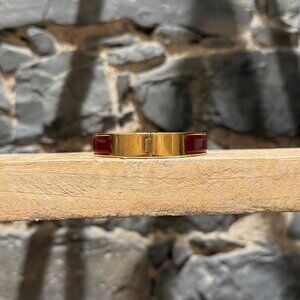 Burgundy red enamel hinged bracelet with signature H clic closure. Thin model. Gold plated hardware. Made in France. Comes with Hermès box and Hermès velvet pouch.