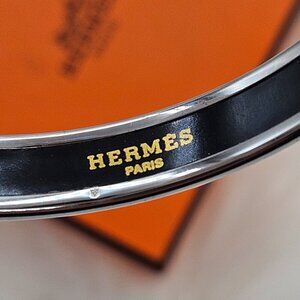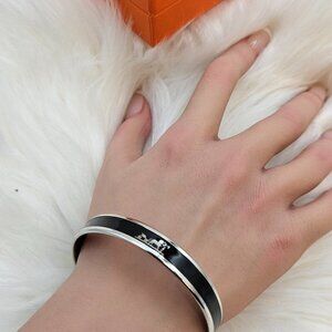 This narrow bangle is crafted with palladium-plated metal and features a smooth black enamel finish, accented by the signature silver detailing.