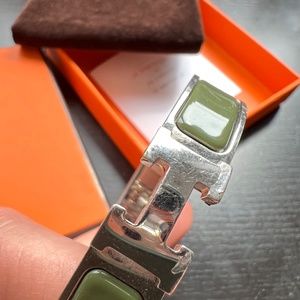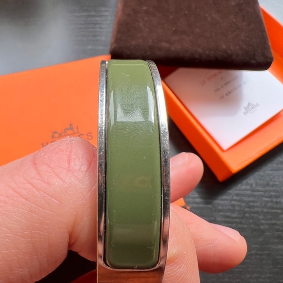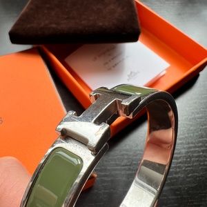 Hermès - Clic Clac H Bracelet in GM Green Olive/Silver Along With Store Packing!