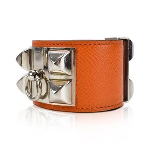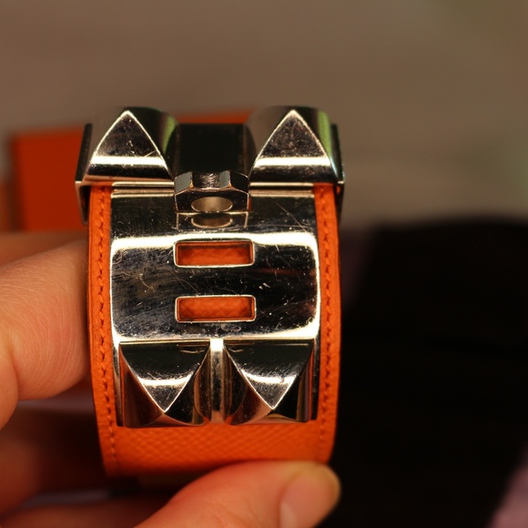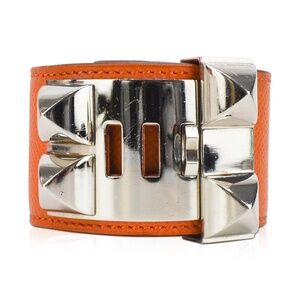 Hermès - S/PM CDC Collier De Chien in Silver/Orange Epsom Leather Cuff Full Set