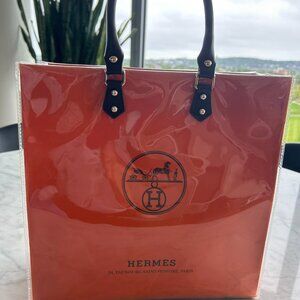 Hermès paper shopping bag with plastic cover and handle. 12" x 4" x 12"