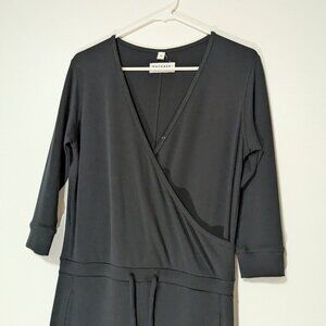 Hernest Project Wrap V-Neck 3/4 Sleeve Jumpsuit Loungewear Black Size Small