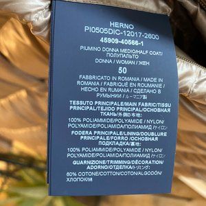 This Herno Jacket is in excellent condition, NWOT. There is one cover missing from a snap on the inside of the coat. See last 2 pics. It is a return from Nordstrom.