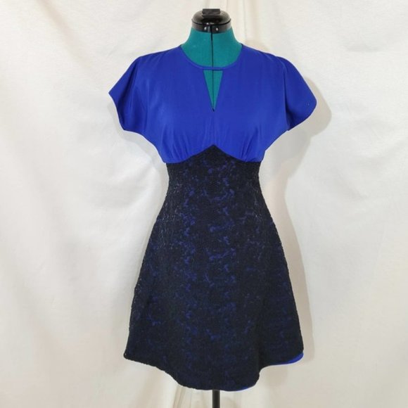 Heroines Blue Dress with Black Lace Overlay - Size Small
