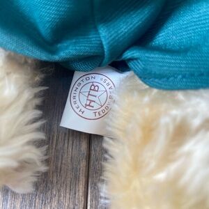 Adorable teddy bear wearing a brown hat and green outfit. Perfect for collectors.