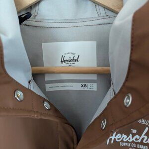 Stay dry in style with this Herschel Supply Co. rain jacket in a rich, caramel brown. Size XS. Water-resistant polyurethane shell with a soft-touch interior—lightly lined for comfort.