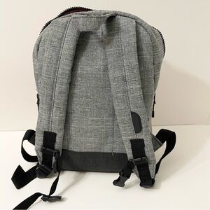 This backpack is pre-owned and in used condition. There are a few large stains inside of the bag, on the inner side of it and on the back and front of the inner lining as well. There are a few small marks on the red part of the outside of the bag and some scuffs and marks on the bottom of the bag. Please see all photos for exact item.