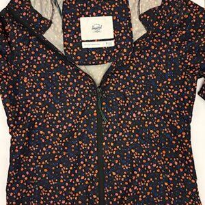 Herschel Voyage Hooded Jacket size small navy blue with blue and orange flowers