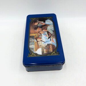 This vintage Hershey's Pot of Gold tin box features a charming Victorian family scene on the lid.