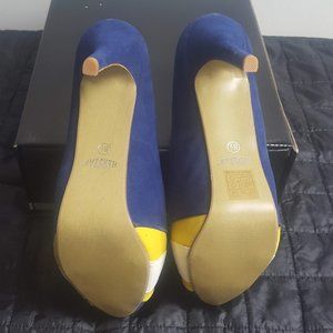 Herstar Yellow and Blue Sports Themed Platform Pump size 8
