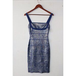 Herve Leger Women's Small Ultramarine Blue Katherine Dress Bodycon Sequin Mini