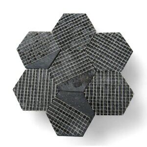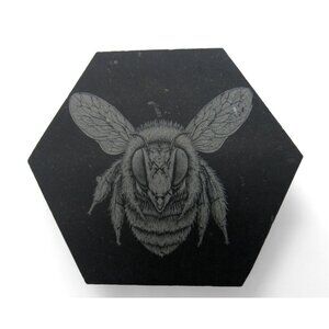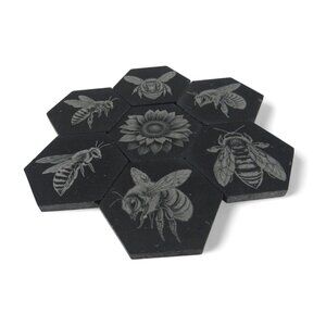 Hexagon BEE TILES Set of 7 Engraved Bees and Flower 3" Mosaic Tile