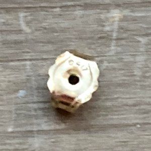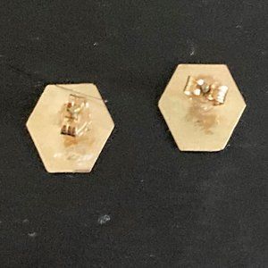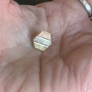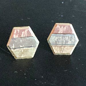 These 10X8 mm beauties feature bands of yellow, white and rose gold with a lightly brushed finish. Marked 417 (for 10K gold) on the backs. They weigh .74 g. In great shape.