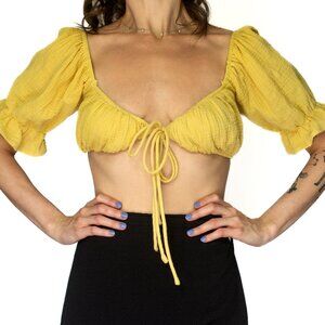 This Hey Babe cropped top is 100% cotton, originally purchased beige, hand dyed naturally with Osage creating a beautiful, light and vibrant shade of yellow!