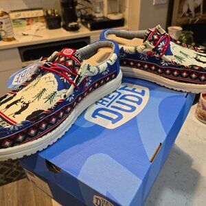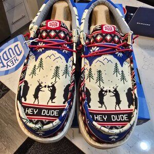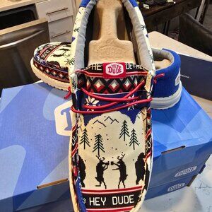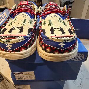 Hey Dude Men's Wally Holiday Cheers Reindeer Christmas White Size 11 NEW