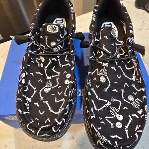 Hey Dude Wally Skeletons Glow in Dark Shoes Moccasin Men' Size 10 NEW RARE HTF