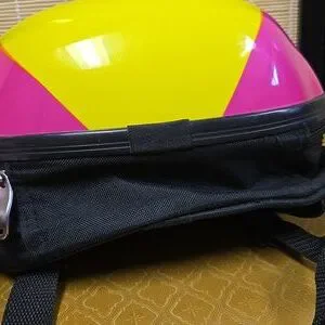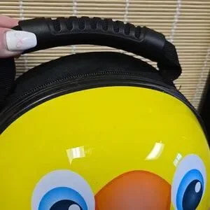 Bright and fun parrot-themed Heys backpack. Features vibrant yellow, red, green, and blue colors. Perfect for little ones on the go. Adjustable straps, hardshell, zipper closure. 13" tall, 10" at bottom base, 5" deep at base. Super cute!
