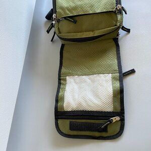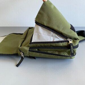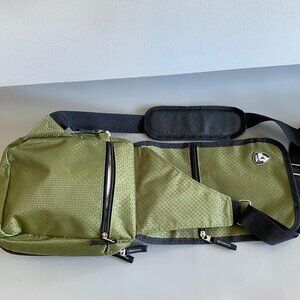 Avocado Green Heys Travel Mate Sling Bag Crossbody Bag Unisex, Multifunctional, expandable, multi zippered compartments & pockets, padded shoulder strap, adjustable strap, hidden mesh water bottle pouch. Excellent preowned condition, clean & scent free.