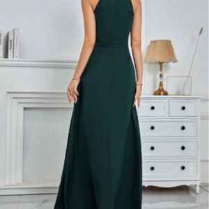 Green halter hi-lo dress in medium size. Bought bunch of dresses to try for wedding, but decided to go with another dress. Tags still intact and NEVER WORN.