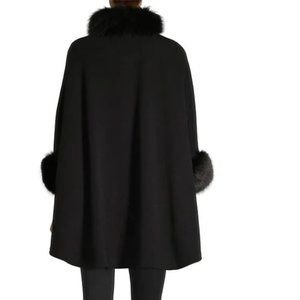 This luxurious winter cape is crafted from an Italian blend of wool and cashmere and finished with a fox-fur trimmed collar and cuffs.