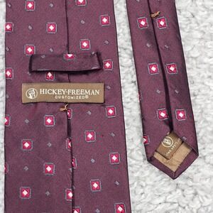 Hickey Freeman Neck Tie Purple Geometric 100% Silk Made in Italy Embroidered