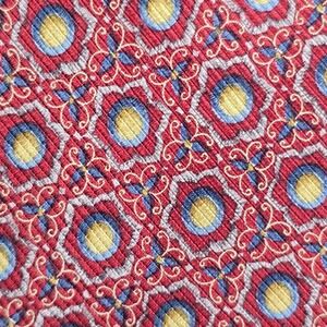 Hickey Freeman Neck Tie Red Blue Geometric 100% Silk Made in Italy