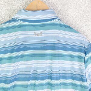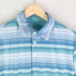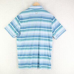 Hickey Freeman Polo Mens Medium Green Blue Striped Short Sleeve Golf Athletic