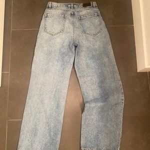 These pants have been worn, and the back tab is a little damaged. But other than that, they are a cute pair of jeans.