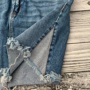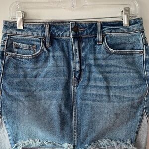 Hidden Distressed Denim Raw Frayed Hem Jean Mini Skirt