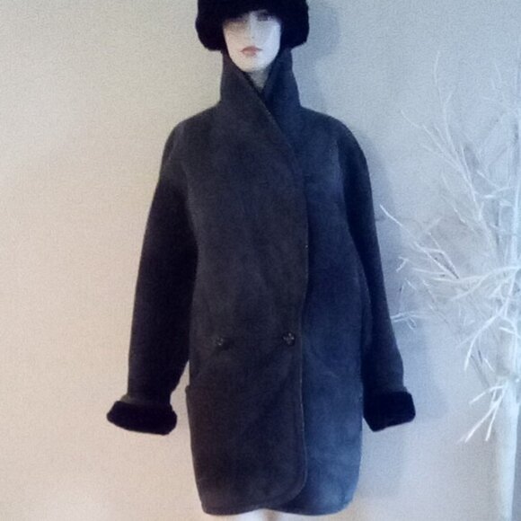 Hide Society Canada VTG Suede Shearling Women's Coat Gray Size S M Bust 42" Dou